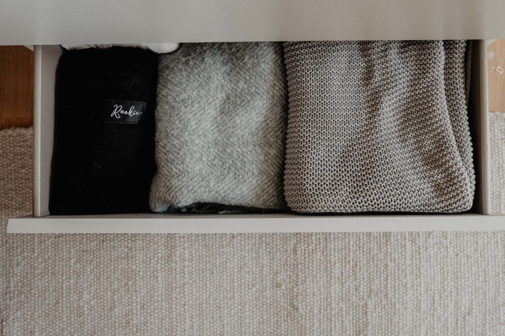2. Nutze vorhandene Möbel: Verwende eine Kommode oder ein Sideboard, das du bereits hast, als Wickelstation. Achte darauf, dass es Schubladen hat, die du auch richtig zumachen kannst. So kannst du alles verstauen und der Raum wirkt von außen ordentlich und ruhig – ganz ohne sichtbares Chaos.